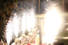 电子烟火常常在新人在婚礼上接吻时被使用,当新人面对所有来宾接下他们的幸福之吻时,电子遥控烟火瞬间绽放在众人的面前。这是激动的一刻,需要用爱的火光来照耀她。电子烟火能瞬间调动起来宾的情绪,迎接这婚礼的高潮。